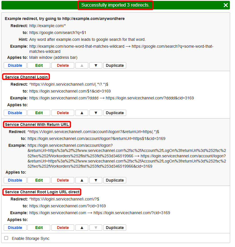 - You don't have to create any new redirects - you can just import the three we have to help facilitate the redirect to Service Channel.