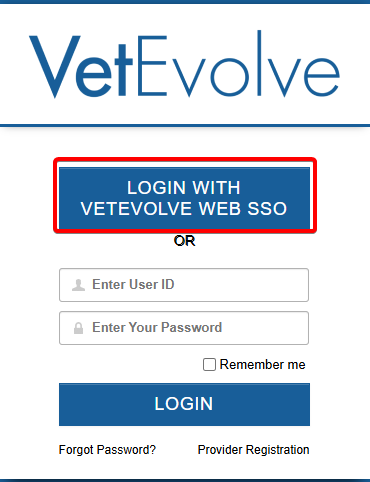 Click the "LOGIN WITH VETEVOLVE WEB SSO" and if need you will be prompted for your Microsoft 365 credentials and then be redirected to the appropriate Service Channel page.