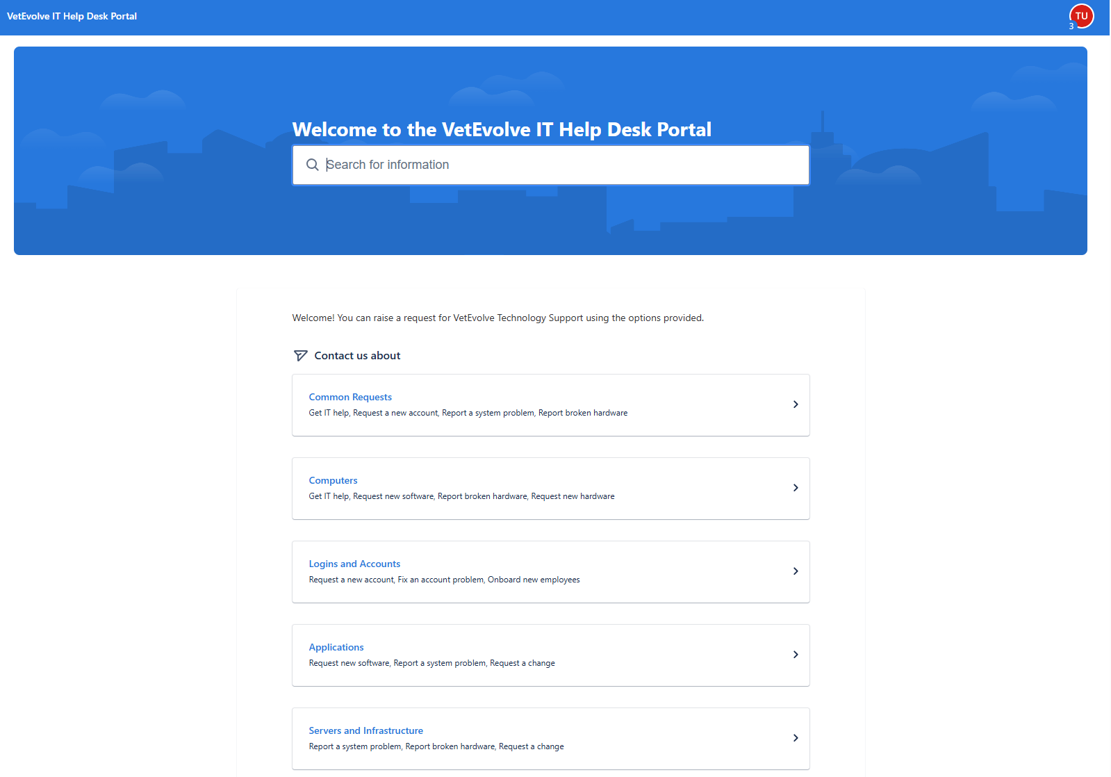 The second option is to use the Jira Service Management portal at https://helpdesk.vetevolve.com. Detail about logging into the portal are below.