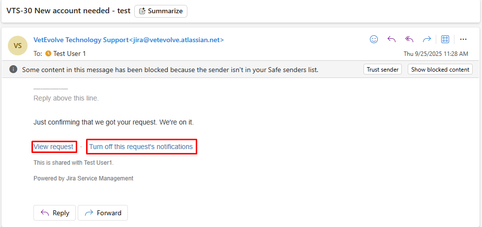 The email also has direct links that will take you to the portal to view more detailed information about your request.