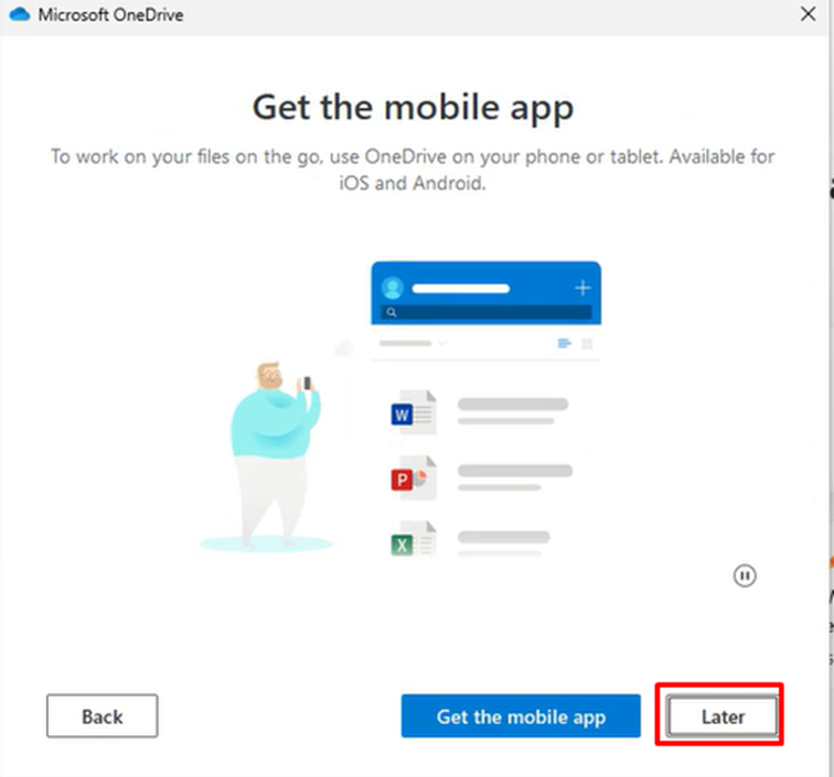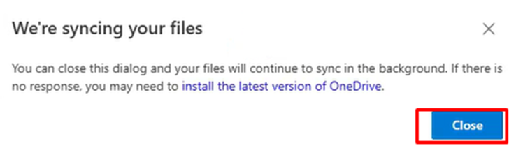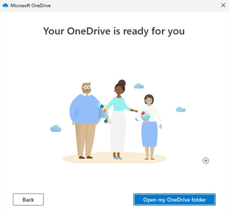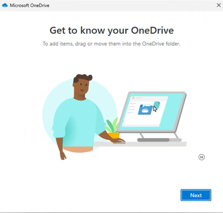 Once signed in – accept the defaults to finish the OneDrive setup. Note if you have a large number of files, this could take some time to sync your individual OneDrive data.