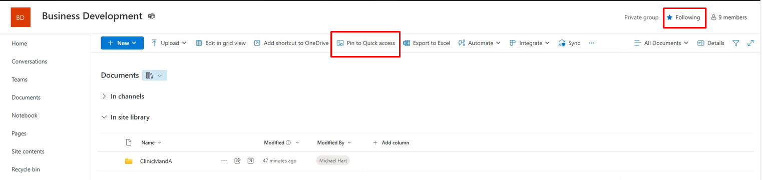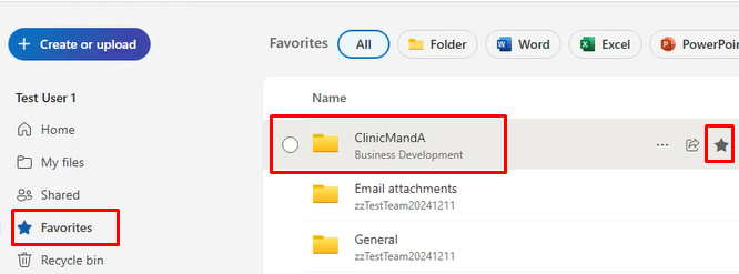 4. Optional: Favorite the SharePoint site to make it easy to find in your OneDrive interface