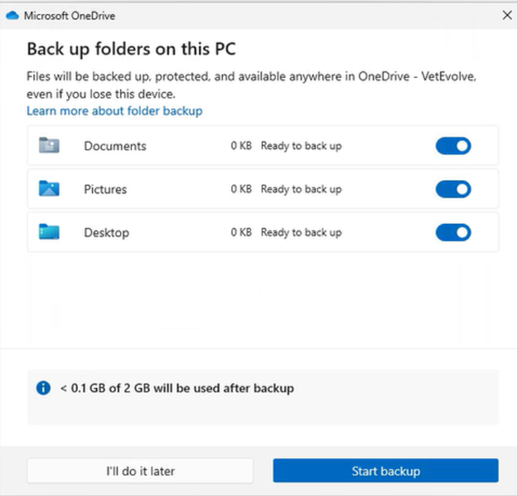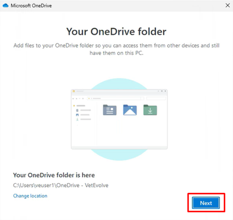 You will now have a OneDrive folder available in your Windows Explorer with your Firstname-VetEvolve