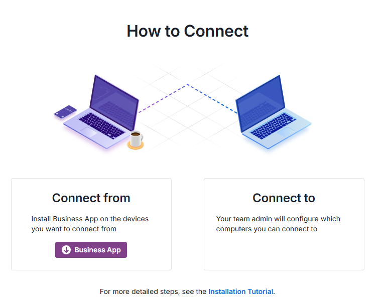 You have two options to connect to computers you have access to - through the web interface or through the Splashtop Business App.