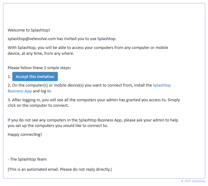 Invitation and Sign-in to Splashtop